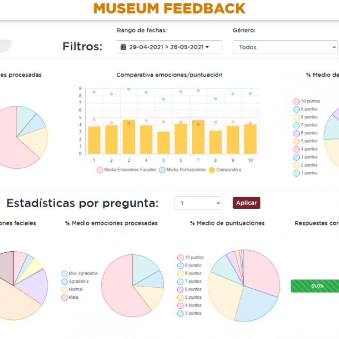 Museum_feedback es una aplicación móvil que recoge datos subjetivos sobre los visitantes de un museo, analizando el feedback sobre obras o piezas específicas mediante reconocimiento facial, a través de una experiencia gamificada tipo quiz.